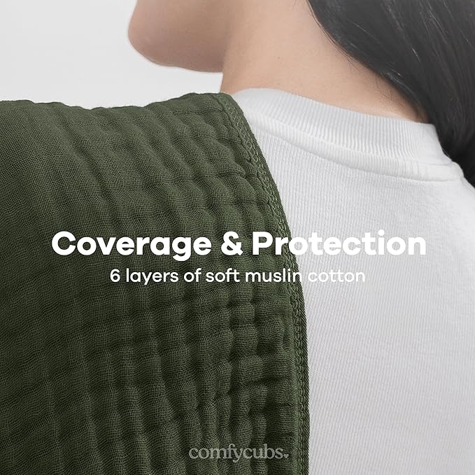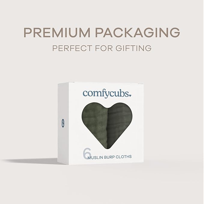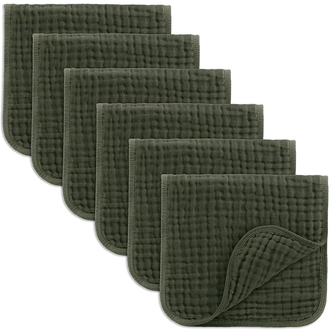 Comfy Cubs Muslin Burp Cloths 20" x 10", Pack of 6 - Large, 6-Layer, Ultra Absorbent 100% Cotton for Baby Drool and Messes - Soft, Safe & Gentle Baby Burp Cloths Set for Boys & Girls - Kelp