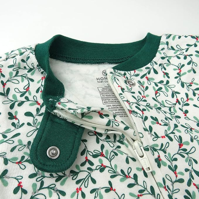 HonestBaby Non-Slip Footed Holiday Pajamas One-Piece Sleeper Zip-Front PJs Organic Cotton for Baby Boys, Girls, Unisex