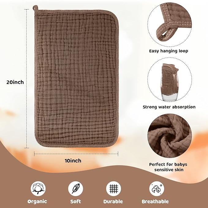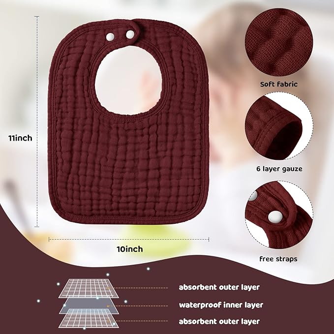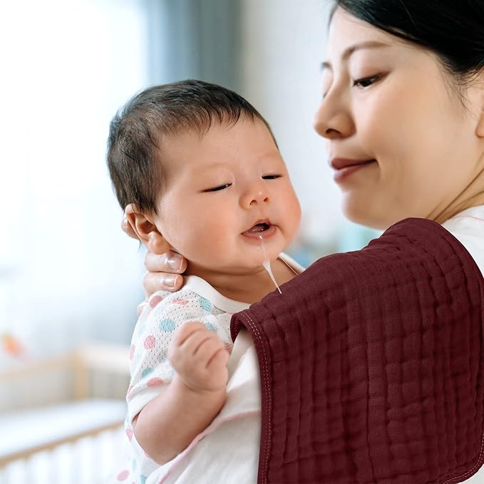 - 6 Absorbent Layer Design: each muslin burp cloths has 6 layers, thick enough to absorb liquids and easily wipe away sweat and water, providing a comfortable use that will keep baby's chin dry and the soft material will guard teething baby's cheeks