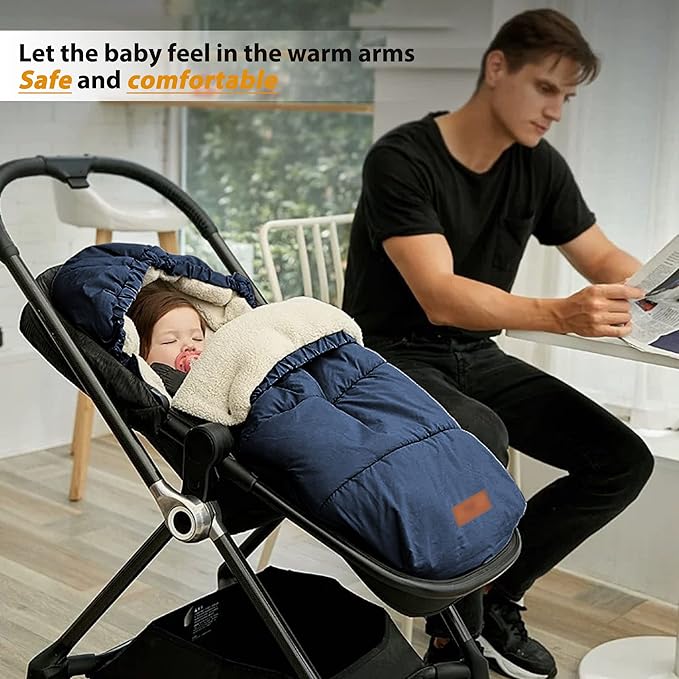 LAT Baby Warm Bunting Bag Universal,Stroller Sleeping Bag Cold Weather,Waterproof Toddler Footmuff(Detachable,Navy Blue)