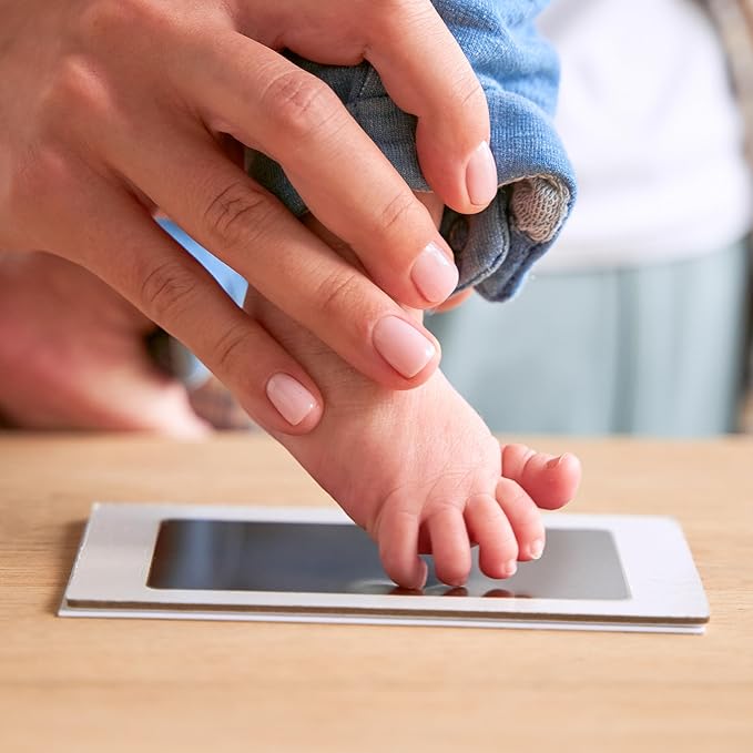 - The Album Set Includes - Leather-bound loose-leaf baby journal with a keepsake pocket and 15 card holders for best wishes cards; 2 inkless no-mess clean touch ink pad kits for newborns (for a hand or foot up to 3.5 inches long), brown; 160 milestone stickers (1" X 1"); 15 best wishes cards; 1 roll of double-sided tape for photos; 1 velvet case.
