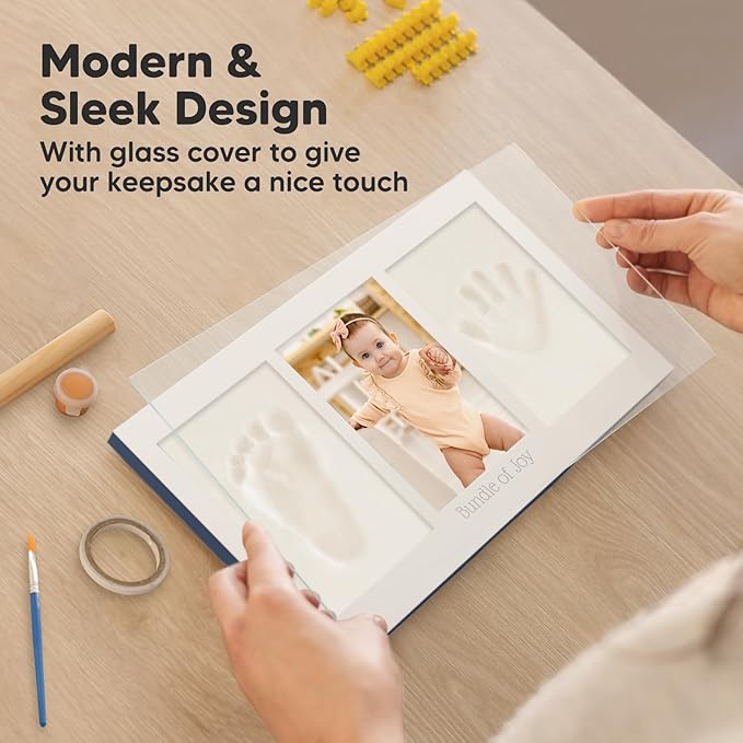 - 100% Safe Food-Grade Clay - Our baby picture frame features 100% baby-safe air-dry clay, perfect for preserving your baby prints. Our premium material ensures durability, the baby hand and footprint maker will look flawless for years to come.