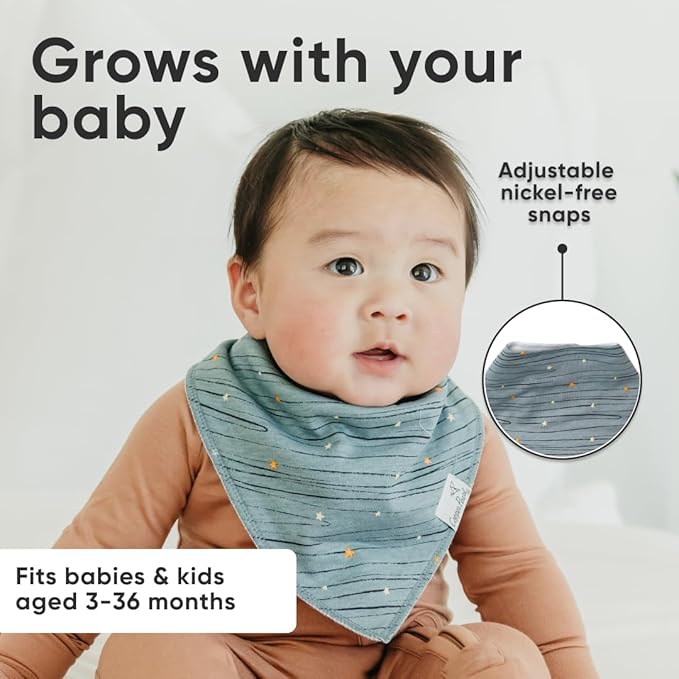 - GROWS WITH YOUR BABY: Each bib features two adjustable nickel-free snaps, allowing for a perfect fit from newborn through toddlerhood (3–36 months).