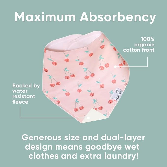 - MAXIMUM ABSORPTION: Fronted by ultra-soft Organic Cotton and lined with water-resistant polyester fleece to provide an extra layer of absorbency. Each bib is crafted with dual-layer protection against heavy drooling or spit-up, keeping your baby dry and comfortable.
