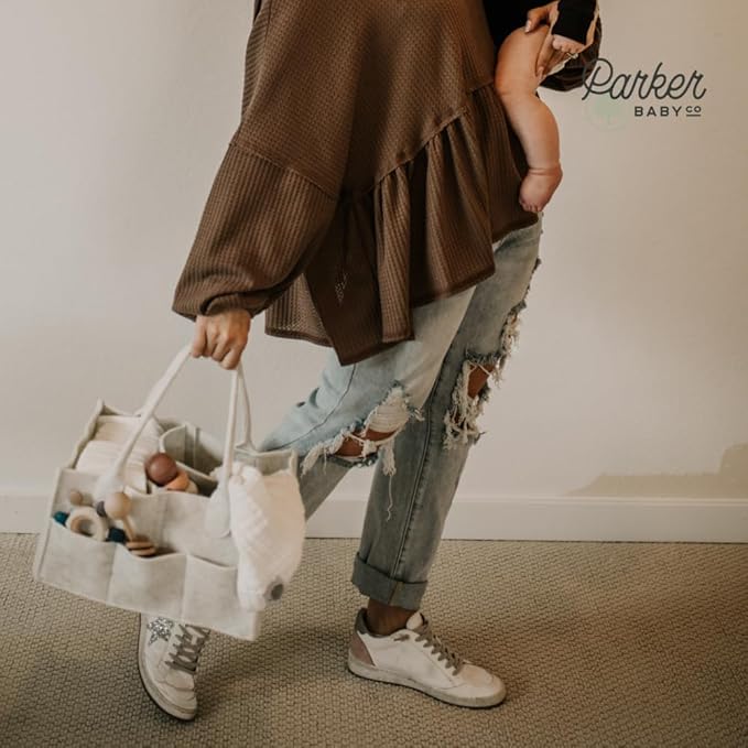 - QUALITY AND SATISFACTION GUARANTEE: Crafted from soft felt, our diaper caddy is built to last. The high-quality materials ensure durability and easy maintenance. We stand behind the product with a satisfaction guarantee, making your purchase risk-free. Elevate your diaper organization with the Parker Baby Diaper Caddy – the ultimate diaper bag essential and nursery organizer.