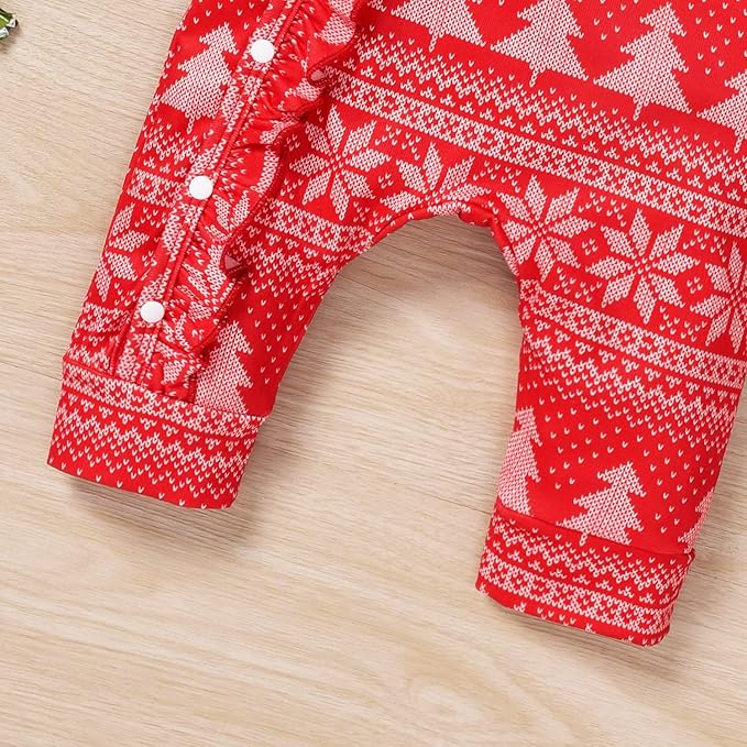 - UNIQUE XMAS DESIGN : Aalizzwell classic crew neck Christmas romper with different colors. Easy diaper changing with snaps closure. Vintage ruffle sleeve & patchwork design. Matching accessories are included. Different style to choose, it looks especially cute! Every detail is designed for the newborns, giving baby free space to grow up.