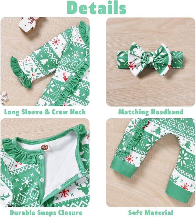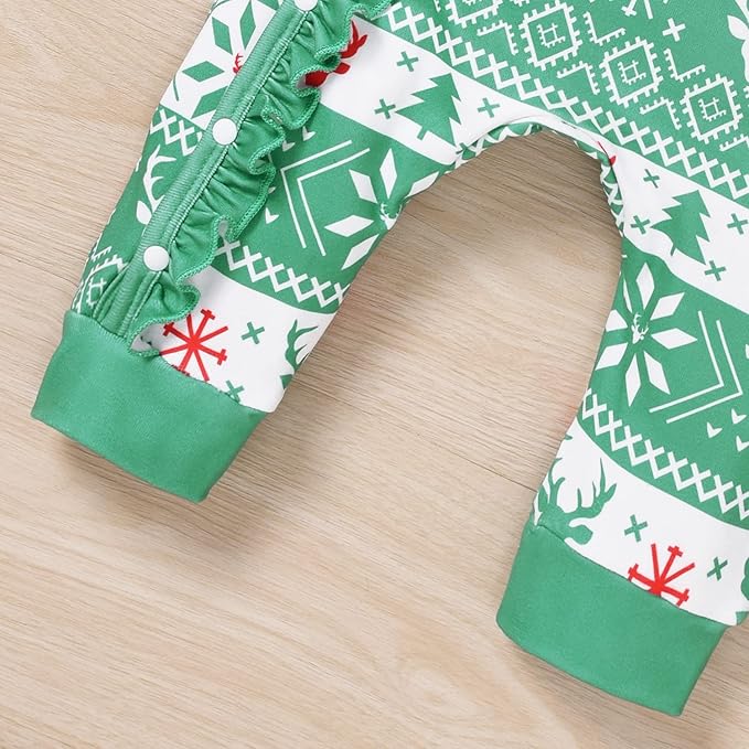 • UNIQUE XMAS DESIGN : Aalizzwell classic crew neck Christmas romper with different colors. Easy diaper changing with snaps closure. Vintage ruffle sleeve & patchwork design. Matching accessories are included. Different style to choose, it looks especially cute! Every detail is designed for the newborns, giving baby free space to grow up.