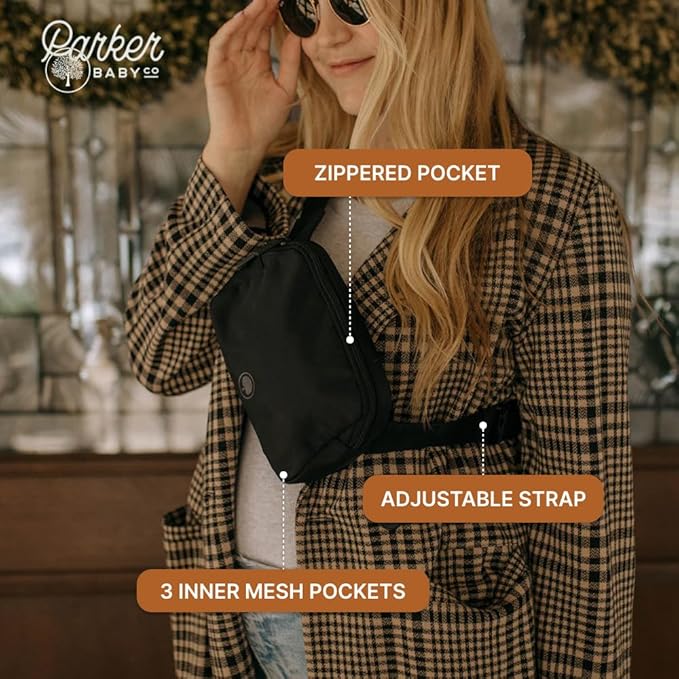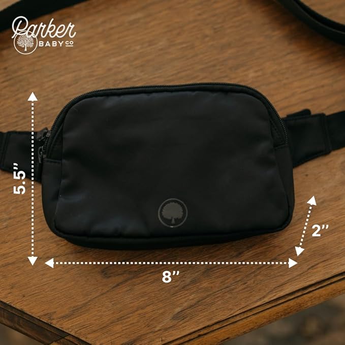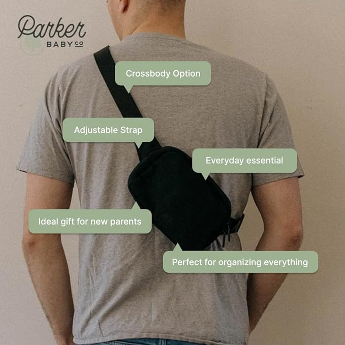 Parker Baby Diaper Belt Bag - Portable Fanny Pack Diaper Bag, Crossbody Bag for Moms - "Birch Belt Bag" - Black