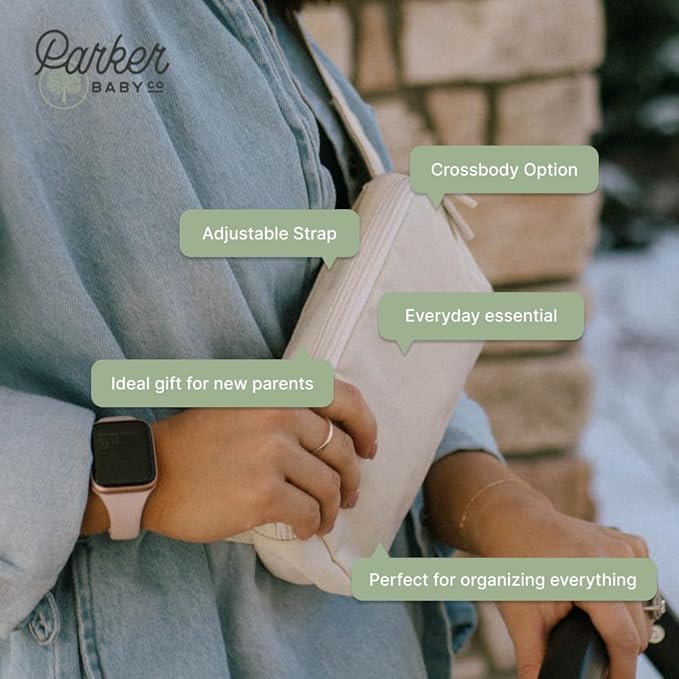 Parker Baby Diaper Belt Bag - Portable Fanny Pack Diaper Bag, Crossbody Bag for Moms - "Birch Belt Bag" - Cream