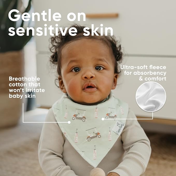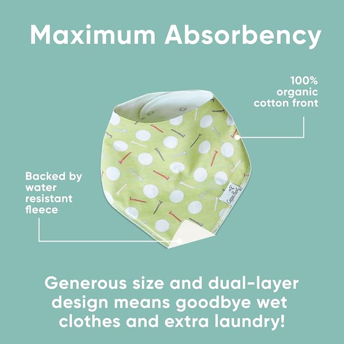 - MAXIMUM ABSORPTION: Fronted by ultra-soft Organic Cotton and lined with water-resistant polyester fleece to provide an extra layer of absorbency. Each bib is crafted with dual-layer protection against heavy drooling or spit-up, keeping your baby dry and comfortable.