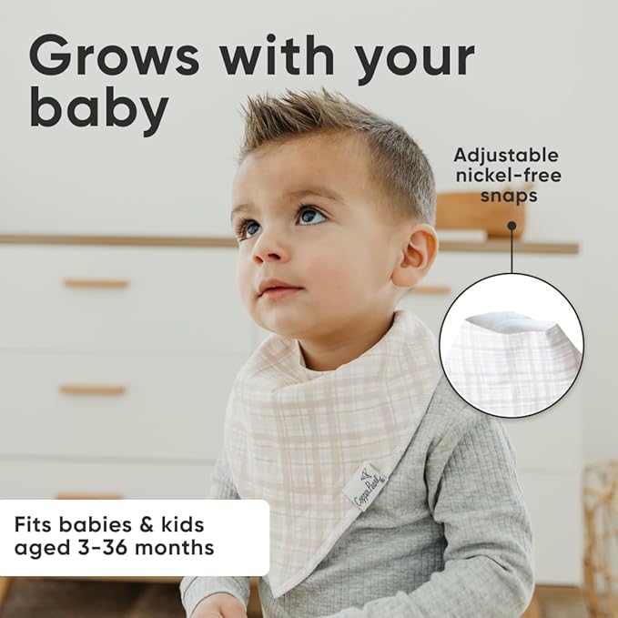 - GROWS WITH YOUR BABY: Each bib features two adjustable nickel-free snaps, allowing for a perfect fit from newborn through toddlerhood (3–36 months).