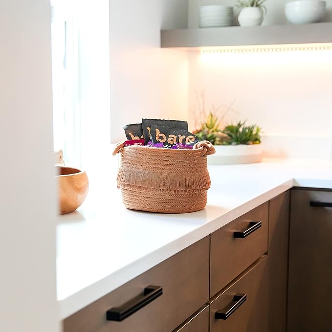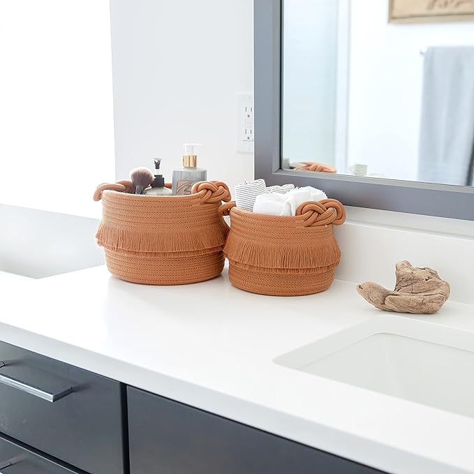 - ELEGANTLY DESIGNED TO MATCH ANY INTERIOR THEME: Classic colors that match ANY design scheme? Yes, please! Our woven baskets come with 8 colors for your selection that matches your interior design from boho chic to rustic farmhouse, modern, scandinavian and traditional design schemes, our round cotton rope baskets with tassels make the perfect accents to any decor. Plus, you won’t find a single tacky logo anywhere in sight!