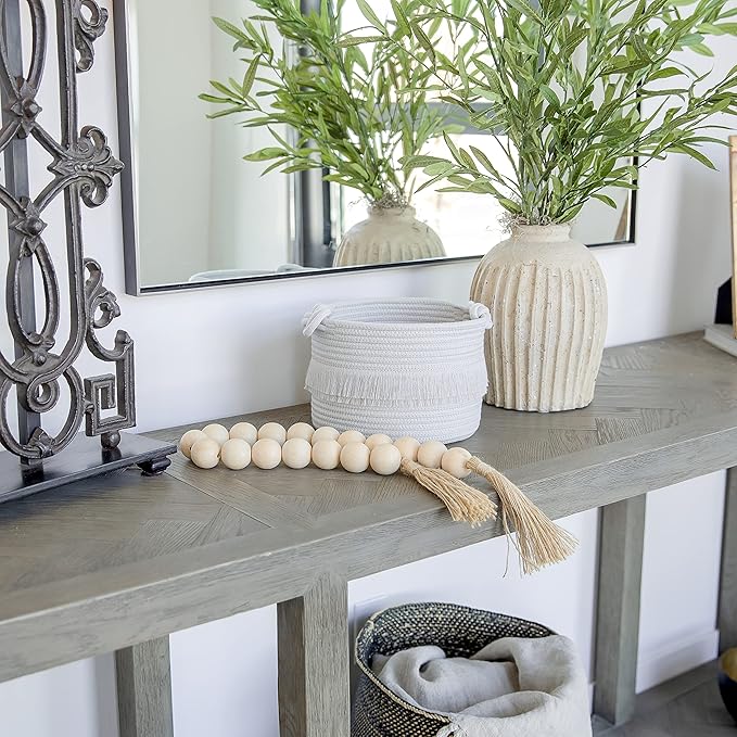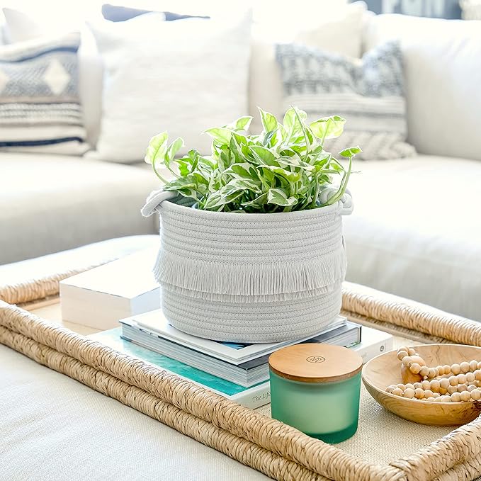 - ELEGANTLY DESIGNED TO MATCH ANY INTERIOR THEME: Classic colors that match ANY design scheme? Yes, please! Our woven baskets come with 8 colors for your selection that matches your interior design from boho chic to rustic farmhouse, modern, scandinavian and traditional design schemes, our round cotton rope baskets with tassels make the perfect accents to any decor. Plus, you won’t find a single tacky logo anywhere in sight!