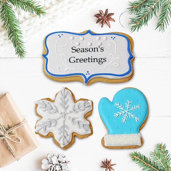 - Christmas Food Gifts : Those homemade style hand decorated frosted Christmas sugar cookies, are perfectly baked, iced, and artistically hand decorated by our pastry designers. This holiday cookie box is filled with 3 cookies. The texture of the cookie is fine and crispy, they come individually wrapped to enhance the freshness, and closed nicely in a Christmas gift box. The box measures 6 inches in the length by 5 inches in the width.