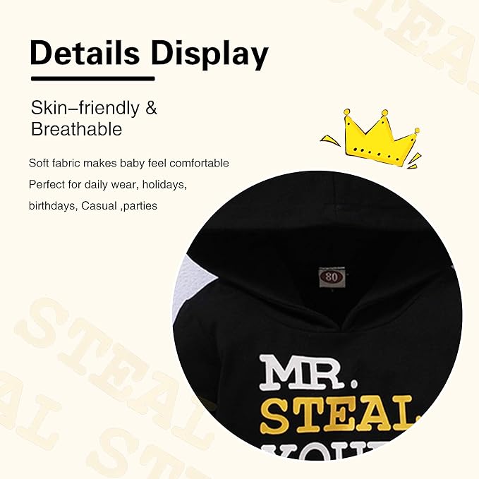 • Multi-Size option - The hoddies for boys outfits set suitable for 6-12 months baby boy clothes,12-18 months baby boy outfits,18-24 months baby boy's clothing,2 3T boys clothes,3-4T toddler boy clothes,4-5T hoodies for boys.