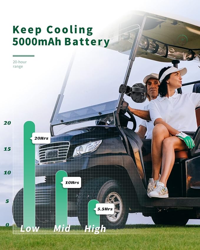 - Rechargeable Fan - This battery powered fan comes with a 5000 mAh. It has the potential to run all day on a full charge. With its USB-C port, it offers 10W charging speed. The USB fan's charging port is compatible with a wide variety of devices, including laptops, phone adapters, power banks, and USB chargers.
