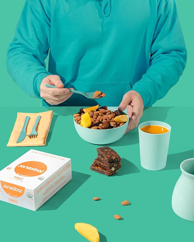 JONESBAR (Mango Almond, 4 Count (Pack of 1)), USDA Organic Fruit & Nut Bar, Non-GMO, Kosher, Vegan, Gluten Free, Simple Snack Bar