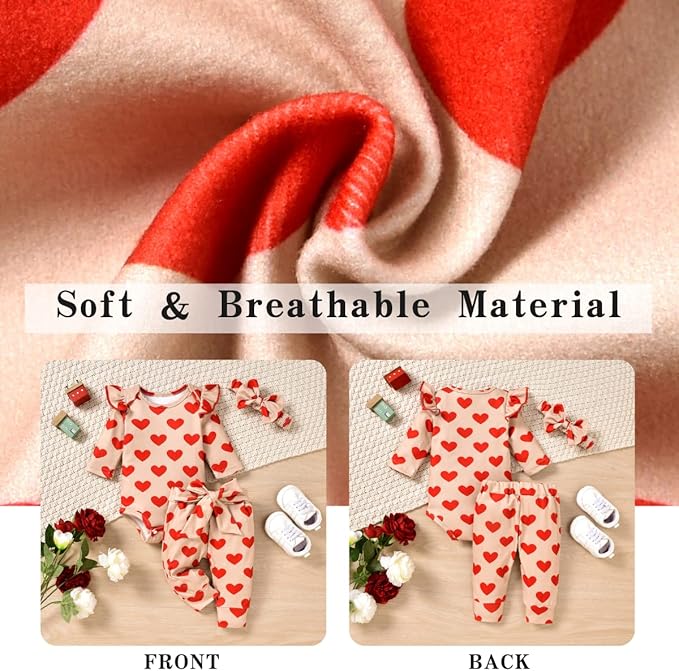- PREMIUM COTTON MATERIAL : Crafted in soft ribbed cotton blend material, high absorbent and breathable, cozy feel of this baby clothing to keep little baby warm and comfy all spring, autumn & winter. Are you ready to wrap your little princess up in this cute baby girl Valentines day pants set?