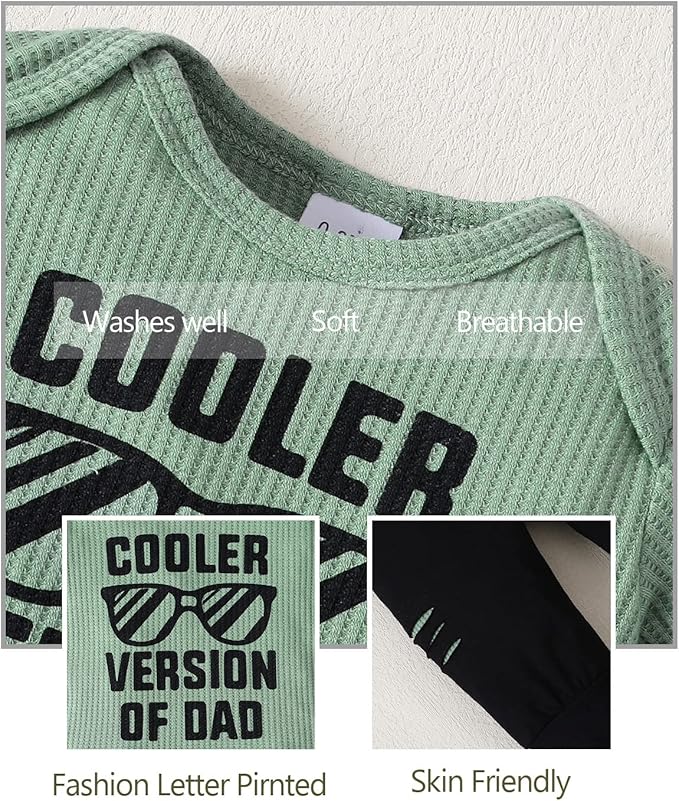 - Eye Catching Design - Baby boy romper with letter print,matching elastic pants and a cute hat are easy to dress and stylish.