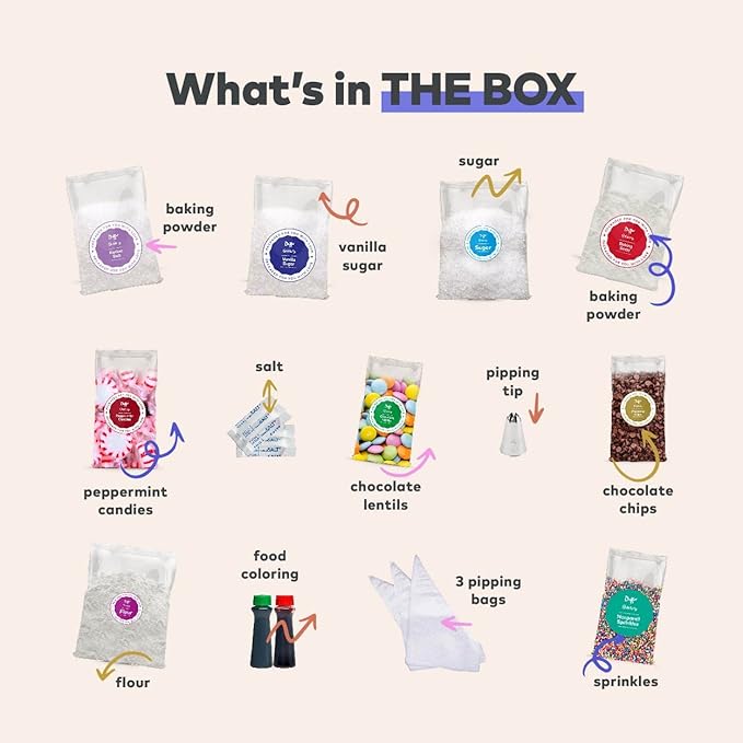 - TOOLS AND EASY-TO-FOLLOW INSTRUCTIONS: This kids cookie baking set has a cookie cutter, piping tip and bags, gloves, food coloring and step-by-step instructions with colorful pictures, so little bakers master the recipe and build confidence in the kitchen.