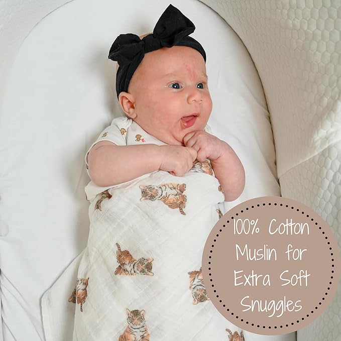 LollyBanks Baby Swaddle Blanket, 100% Muslin Cotton Baby Blanket for Boys and Girls, 47 x 47 Inches Soft and Breathable Swaddles for Newborns, Lightweight Newborn Blanket, Registry (Tiger Cub Print)