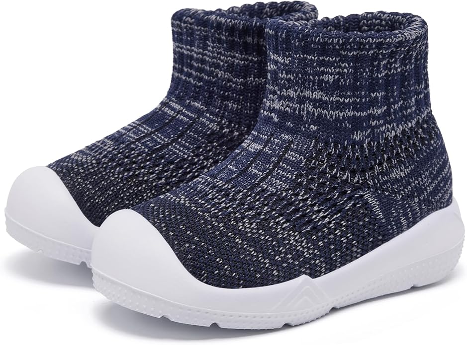 - Friendly Sock-like Upper: Sock-like stretchy textile construction upper hugs the foot to keep them comfortable and flexible when babies are on the move. Baby sock shoes made of soft fabric knit are also friendly to the skin, healthy, and very safe for infant babies.