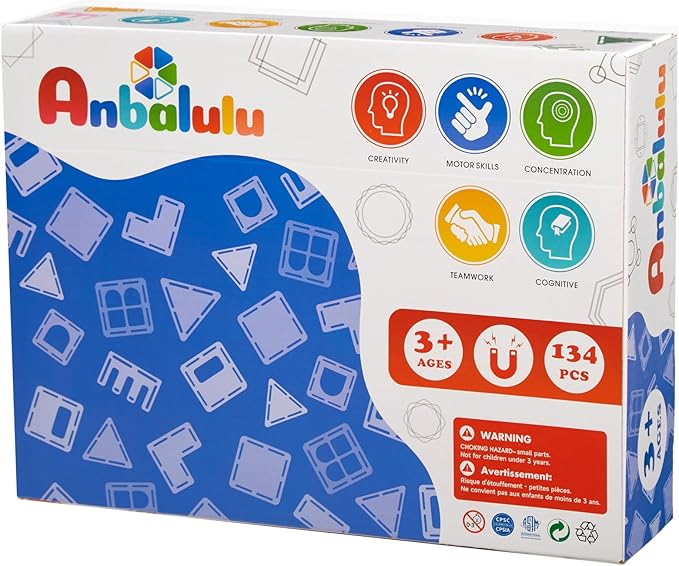 - Large magnetic tiles set:134 pcs in total,132 basic shapes plus 2 cars,with an idea book , beautifully packaged.