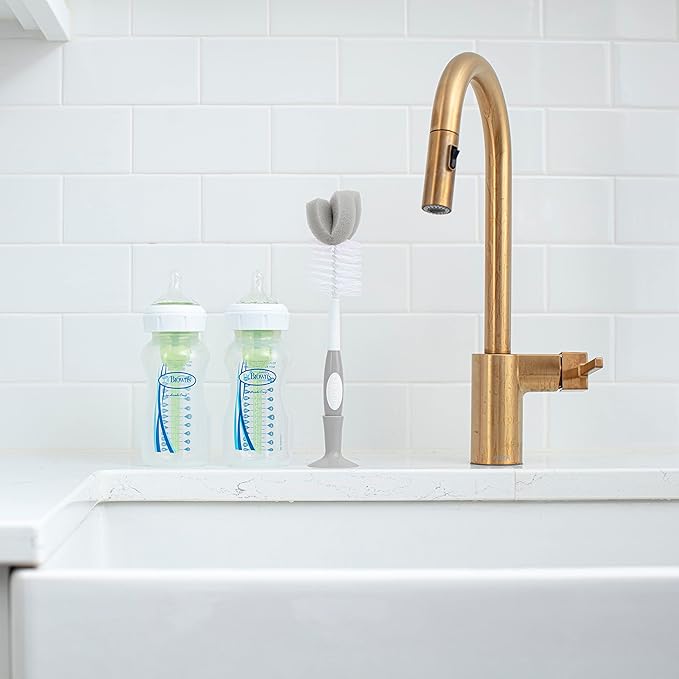 - CONVENIENT STORAGE CLIP. Included suction storage clip allows you to conveniently store the baby bottle cleaning brush near the sink.