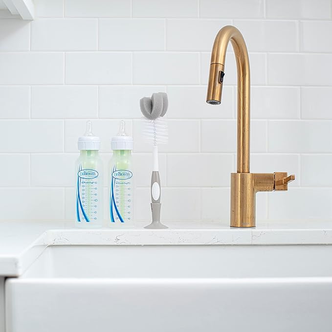 Dr. Brown's Reusable Sponge Baby Bottle Cleaning Brush Set with Suction Cup Stand, Scrubber and Nipple Cleaner, Gray, 3 Pack