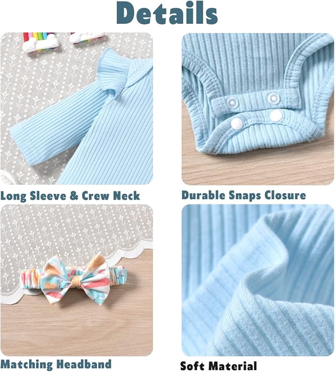 - EASY TO WASH : It's easy to wash whether hand or machine wash, the ribbed cotton can stayed soft after many washes. Machine wash with COLD WATER and line dry away from heat. To keep the baby girl clothes more as soft and comfy as possible!