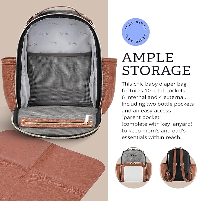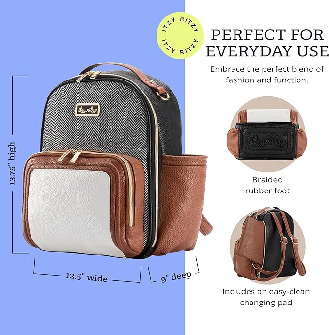 - CHIC & PRACTICAL DESIGN – The Itzy Ritzy Mini Plus Mini Diaper Bag Backpack blends modern style with everyday practicality. Made from vegan leather, this compact and chic travel diaper bag is perfect for quick outings when you need only the essentials for your baby. Its gender-neutral design ensures it’s ideal for any parent.