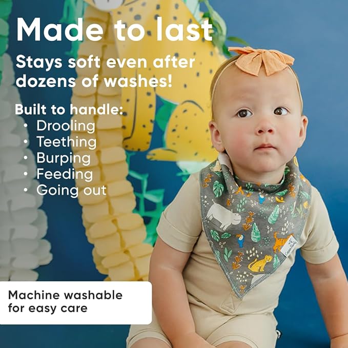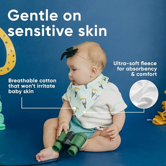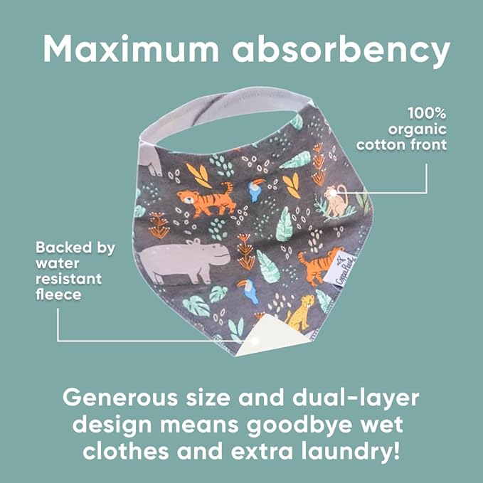 - MAXIMUM ABSORPTION: Fronted by ultra-soft Organic Cotton and lined with water-resistant polyester fleece to provide an extra layer of absorbency. Each bib is crafted with dual-layer protection against heavy drooling or spit-up, keeping your baby dry and comfortable.