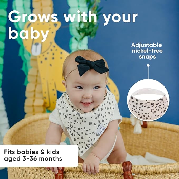 - GROWS WITH YOUR BABY: Each bib features two adjustable nickel-free snaps, allowing for a perfect fit from newborn through toddlerhood (3–36 months).