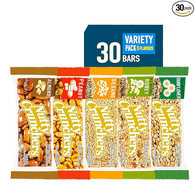 Nutty Crunchers All Natural Ingredients (Variety Pack - 5 Flavors, 30 Bars/box)