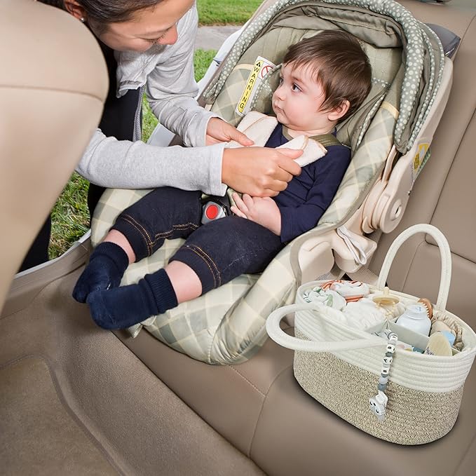 Large Baby Diaper Caddy Organizer for Girl Boy Rope Nursery Storage Bin Basket Portable Holder Tote Bag for Changing Table Car Travel Baby Shower Gifts Newborn Registry Must Haves White and Brown