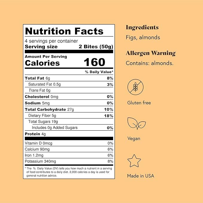 - SIMPLY DELICIOUS: Fichi Fig and Almond Bites contain just figs and almonds. That’s all you need for a healthy and delicious snack that's also gluten free, vegan and high in fiber