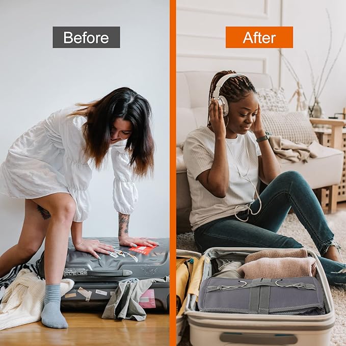 - 【Easy to carry and pack】The foldable design allows you to easily pack the organizer and take it with you in your luggage or suitcase without occupying too much space. When not in use, simply fold it up and store it in a closet or any other storage space, taking up minimal room. It is particularly suitable for use in suitcases,luggage,RVs, and closets.
