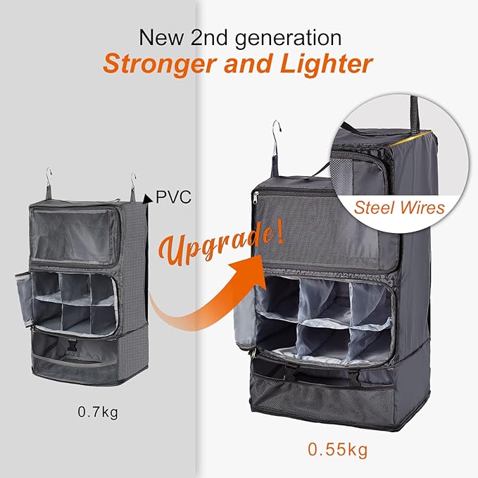 - 【Lightweight】The hanging shelves are made of high-quality polyester material, which ensures durability and longevity. Additionally, the polyester material is lightweight, making it easy to transport and use while traveling with your luggage or suitcase.