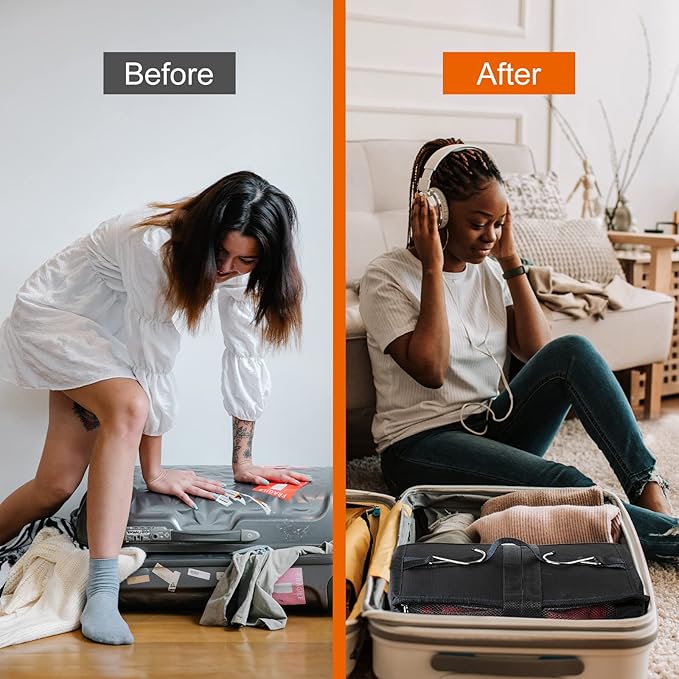 - 【Easy to carry and pack】The foldable design allows you to easily pack the organizer and take it with you in your luggage or suitcase without occupying too much space. When not in use, simply fold it up and store it in a closet or any other storage space, taking up minimal room. It is particularly suitable for use in suitcases,luggage,RVs, and closets.