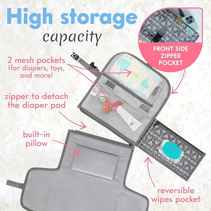 - Diaper Change Anytime, Anywhere - Our diaper changing station with a built-in pillow is your ultimate partner. Whether inside or outside, this diaper changing mat lets you change your baby's diaper on any flat surface!