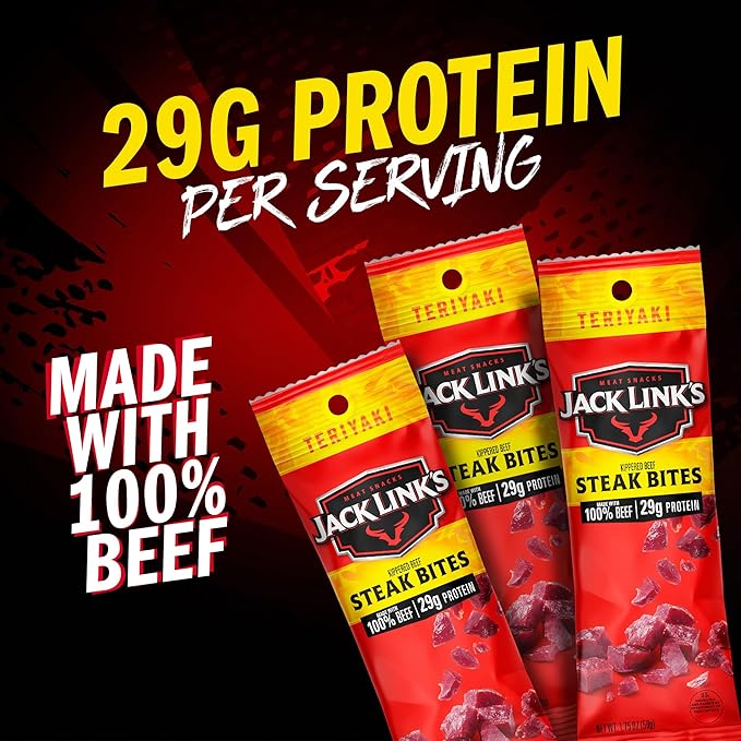 - Sampler pack includes 12 individually wrapped snacks: 2 Jack Link’s Doritos Spicy Sweet Chili Flavored Beef Jerky (2.65oz Bag), 6 Jack Link’s Doritos Spicy Sweet Chili Flavored Meat Stick (0.92oz), 2 Jack Link's Original Beef Steak Bites (1.75oz), 2 Jack Link’s Teriyaki Beef Steak Bites (1.75oz).