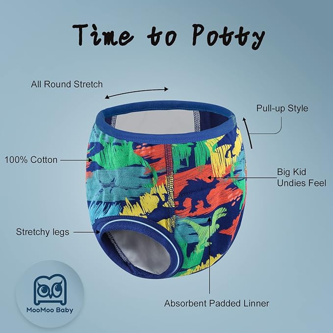 MooMoo Baby Potty Training Underwear 10 Packs Absorbent Toddler Training Pants for Boys and Girls Cotton Pee Pants 2T-9T