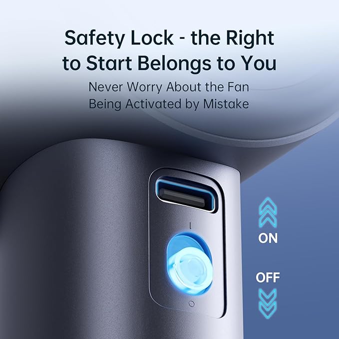 - Digital Display - Power Reminder: This portable fan for travel is equipped with a high-definition digital display screen, which can show the current wind speed and remaining battery power, so you no longer need to worry about the remaining power of the fan. When the battery of this mini fan is low, you can arrange for charging in advance, ensuring a cool companion on every trip