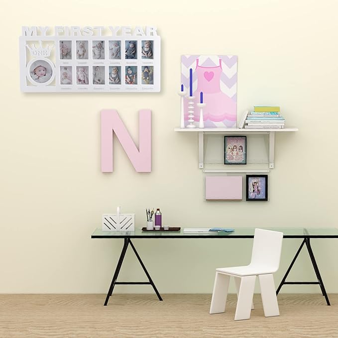 ESTAMICO Baby Picture Frames My Frist Year Photo Keepsake for Baby 1-12 Months Memory, White