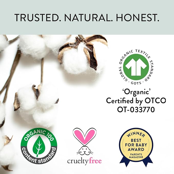 • 100% ORGANIC COTTON: Certified by GOTS, the leading world-wide standard for products made in sustainable manufacturing facilities, without the use of synthetic pesticides, non-toxic, PVC free and without heavy metal phthalate dyes