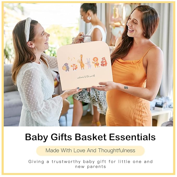 - 【BABY GIFTS FOR NEWBORN】Adorable baby gifts to accompany a gift card or other items on the baby registry, you can send your sincere wishes. Our gifts box designed in neutral gray coloured with real metal clasps and handle, suitable for all occasions as baby shower gifts for girls or boys, gender reveal gifts, gift for pregnant friend etc. Imagine yourself or your friend receiving this carefully arranged baby gift box, and can be sure she will absolutely love the gifts