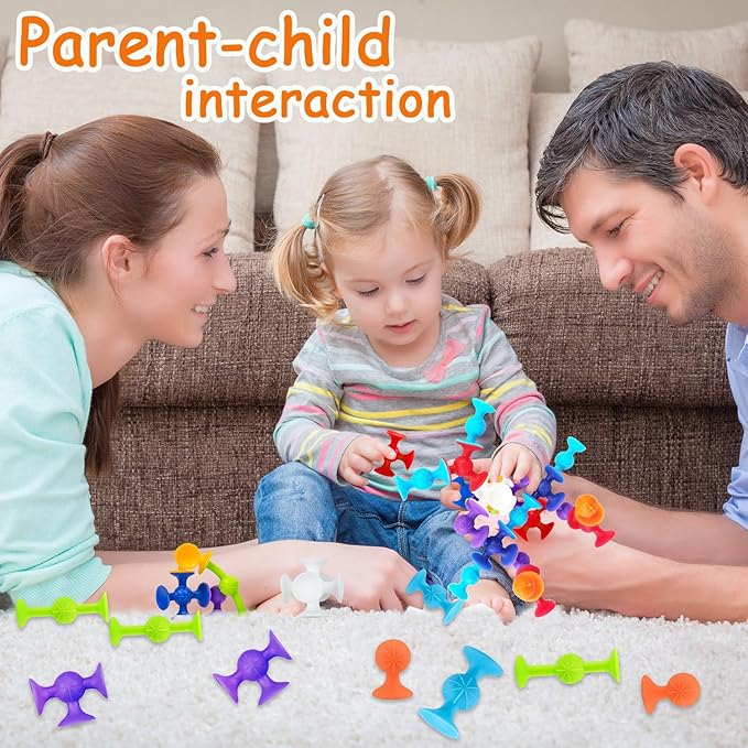 - 🌈【 Suction Cup Toys for Baby 】48PCS building stacking sucker toy set is great enlightenment toy for kids. It can be transformed into various shapes such as numbers, geometric figures & objects, to help children learn numbers and recognize shapes. NOT FOR TEETHING!!