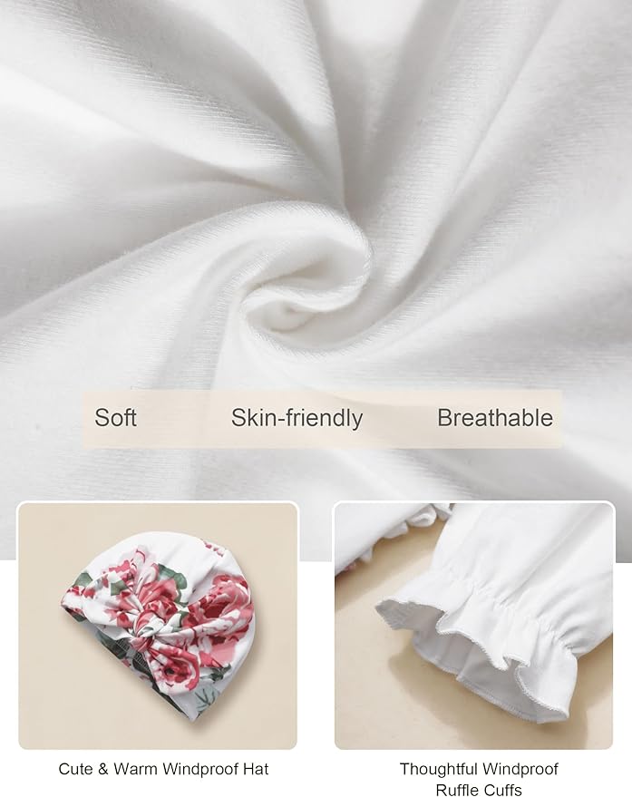 - ♥🌷Intimate Design-Newborn onesie Girl: The baby girl fall clothes adopts snap closure design, which is convenient for changing diapers. This back of newborn baby girl clothes is a retro pleated design, which is matched with a lovely baby bow headband and hat. It is warm and comfortable to fit your baby's head, making your little baby girl more attractive and lovely. Every detail is designed for the newborns, giving baby free space to grow up.