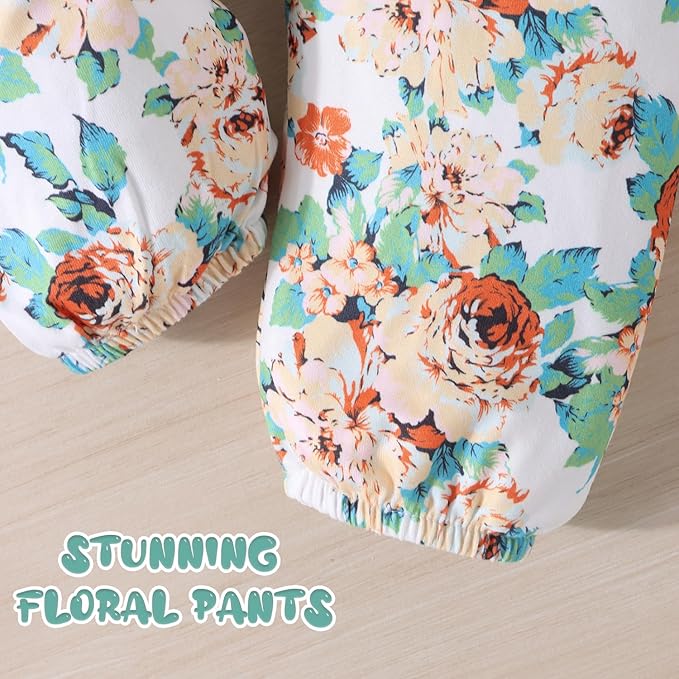 GDTOGRT Baby Girl Clothes Newborn Infant Outfits Ruffle Romper+ Floral Pants + Cute Headband Sets for Girls