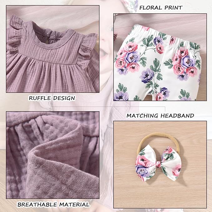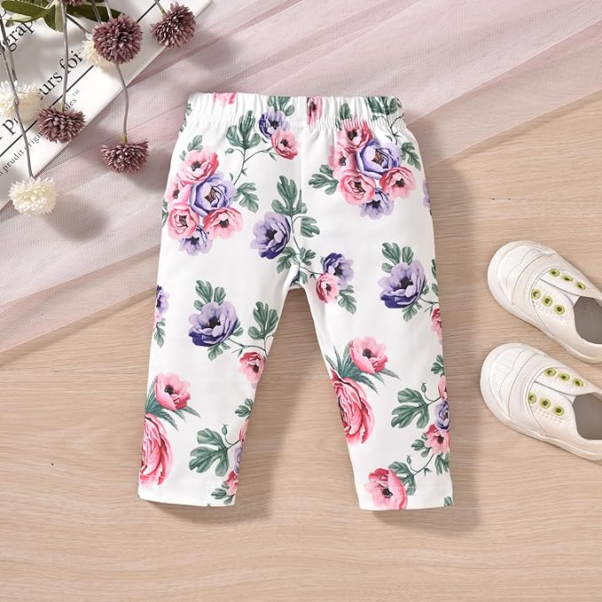 • ✤✤CUTE STYLE: Baby infant fall clothes set, classic crew neck ruffle long sleeve solid color top, adorable floral print cozy pants, matching a lovely headband, 3 piece baby clothes set. Your little lover will get a lot of compliments when she's in this set of cute baby girl clothing.